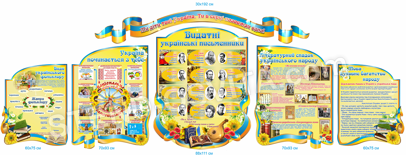 Стенди про булінг та психологічне здоров’яУ сучасних школах питання безпеки, емоційного стану учнів та профілактики конфліктів виходять на перший план. Саме тому інформаційні стенди на тему булінгу та психологічного здоров’я стають невід’ємною частиною оформлення навчального простору. Представлений комплект стендів — це ефективний інструмент для формування свідомого, відповідального та дружнього середовища у школі. Стенди для кабінету української літературиСтенди для кабінету української літератури — ефективний інструмент сучасної освіти Оформлення навчального простору відіграє важливу роль у формуванні зацікавленості учнів до предмета. Якісні та змістовні стенди для кабінету української літератури допомагають не лише прикрасити клас, а й створити потужне освітнє середовище. Саме тому все більше шкіл обирають сучасні інформаційні стенди, які поєднують у собі яскравий дизайн і навчальну цінність. Комплект стендів для кабінету «Захист України» – сучасне оформлення навчального просторуСучасний кабінет предмета «Захист України» потребує наочних матеріалів, які допомагають учням краще засвоювати важливі знання з безпеки, військової підготовки та відповідального ставлення до захисту держави. Саме тому комплект навчальних стендів «Готуємося до захисту Вітчизни» є актуальним рішенням для шкіл, ліцеїв та навчальних центрів. Такий комплект допомагає ефективно проводити заняття та формувати у молоді базові знання з військової справи. Комплект містить кілька тематичних стендів, які охоплюють ключові розділи навчальної програми. Центральний стенд «Готуємося до захисту Вітчизни» задає загальну тематику оформлення кабінету та підкреслює важливість патріотичного виховання. Алгоритм дій при виявленні вибухонебезпечного предметаАлгоритм дій при виявленні вибухонебезпечного предмета: правила, що рятують життяУ сучасних умовах питання мінної безпеки в Україні є надзвичайно актуальним. Території населених пунктів, лісосмуги, поля, узбіччя доріг можуть містити приховану загрозу. Саме тому алгоритм дій при виявленні вибухонебезпечного предмета повинен бути відомий кожному — від учня до працівника державної установи. Інформаційні стенди з мінної безпеки для школи — ефективний інструмент профілактики нещасних випадків та формування культури безпечної поведінки.