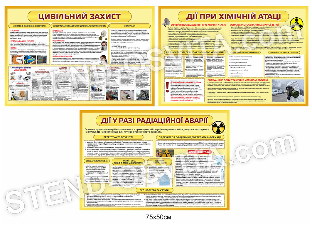 Комплект стендів «Безпека на виробництві» — візуальне навчання, що формує відповідальністьСучасне виробництво неможливе без чітко організованої системи безпеки. Дотримання правил охорони праці, своєчасне інформування працівників та постійне нагадування про ризики — це основа стабільної роботи будь-якого підприємства. Саме тому комплект стендів «Безпека на виробництві» є важливим елементом організації робочого простору. Комплект стендів «Хімічна та радіаційна небезпека» — ключ до формування навичок цивільного захистуУ сучасному світі питання безпеки стають дедалі актуальнішими, особливо в умовах підвищених ризиків надзвичайних ситуацій. Саме тому комплект стендів «Хімічна та радіаційна небезпека» є важливим елементом оформлення навчальних закладів. Стенди з цивільного захисту допомагають учням не лише отримати теоретичні знання, а й навчитися правильно діяти в небезпечних ситуаціях. Як собі допомогти у стресових станахМодульний стенд «Як собі допомогти у стресових станах» — сучасний підхід до психологічної підтримки учнівНабір стендів «Енергозбереження» — ефективний інструмент для екологічного виховання у школіСучасна освіта приділяє значну увагу формуванню екологічної свідомості учнів, і саме тому стенди енергозбереження для школи стають важливим елементом навчального простору. Якісний набір стендів «Енергозбереження» допомагає не лише прикрасити простір, а й донести до дітей важливість раціонального використання ресурсів.