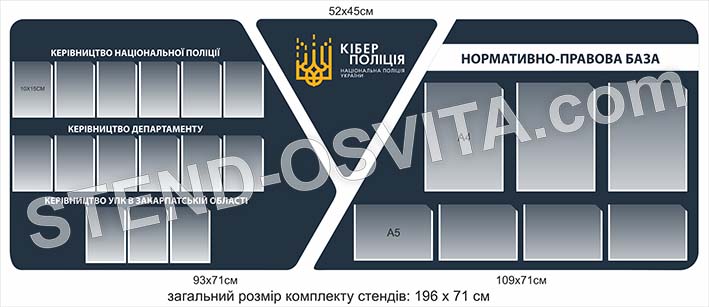 "Кібер поліція" комплект стендів Код С1295, розмір 196х71см, ціна 2714грн Якісні стенди ✅ Стенди на замовлення ✅ Доставка стендів по Україні ✅ Низькі ціни ✅ Тільки якісні та безпечні матеріали Матеріали: Стенди з ПВХ 4мм або ПВХ 3мм, на вибір. Покриті плівкою Oracal найвищої якості. Кишені виготовляються з прозорого пластику, який є довговічним та не змінює колір. Безкоштовно вносимо корективи: За дизайном, кольором, формою та наповненням стендів. Індивідуальна розробка стендів за Вашими побажаннями! Способи кріплення: За допомогою спеціальних цвяхів. Кріплення надається разом зі стендами безкоштовно. Також стенди можна кріпити за допомогою саморізів, швидкого мантажу, вушки та петельки (в комплект не входять). Додаткові послуги: · обрамлення молдингом (декоративна золота чи срібляста стрічка по периметру); · ламінування (покриття захисною антивандальною плівкою); · встановлення люверсів (металеві кільця для кріплення); · встановлення вушок-кріплень (з підклейкою); · обрешітка (додаткове упакування для безпечного транспортування великих стендів). Гарантія: Ми надаємо гарантію на всю продукцію терміном 1 рік. Потрібен чек? Скажіть про це менеджеру при оформленні замовлення і ми надішлемо Вам документацію разом зі стендами. Щоб купити, замовити стенд для оформлення середніх професійних навчальних закладів (училищ, коледжів, технікумів, ліцеїв), натисніть кнопку «Купити», щоб оформити замовлення на сайті або зателефонуйте: 095-755-36-05, 068-994-98-39. Доставка стендів здійснюється поштовими службами у будь-який куточок України: Вугледар, Біла Церква, Бердянськ, Велика Олександрівка, Берегово, Бережани, Бориспіль, Бровари, Васильків, Вінниця, Глухів, Кам'янське, Білгород-Дністровський, Дніпро, Дрогобич, Дубляни, Бахмут, Жовті Води, Муровані Курилівці, Житомир, Запоріжжя, Івано-Франківськ, Ізмаїл, Чорноморськ, Косів, Ірпінь, Богодухів, Кам'янець-Подільський, Київ, Коломия, Косів, Покровськ, Краматорськ, Краснодон, Кременець, Чорноморівка, Кременчук, Шаргород, Вільногірськ, Міжгір'я, Кривий Ріг, Луцьк, Львів, Луганськ, Мала Данилівка, Мукачево, Ніжин, Миколаїв, Нікополь, Нова Каховка, Вознесенськ, Ананьєв, Одеса, Острог, Павлоград, Первомайськ, Переяслав-Хмельницький, Дачне, Полтава, Рені, Рівне, Рубіжне, Сєвєродонецьк, Славутич, Слов'янськ, Заброди, Суми, Тернопіль, Березань, Токмак, Ужгород, Умань, Харків, Херсон, Хмельницький, Черкаси, Чернігів, Чернівці, Шостка, Барвінкове, Коростишів, Куп'янськ, Машівка, Самгородок, Хуст, Новоукраїнка, Гола Пристань, Арциз, Авдіївка, Красноград, Ракошино, Новоград-Волинський, Роздільна, Троїцьке, Гайсин, Торецьк, Щастя, Велика Лепетиха і т.д. |